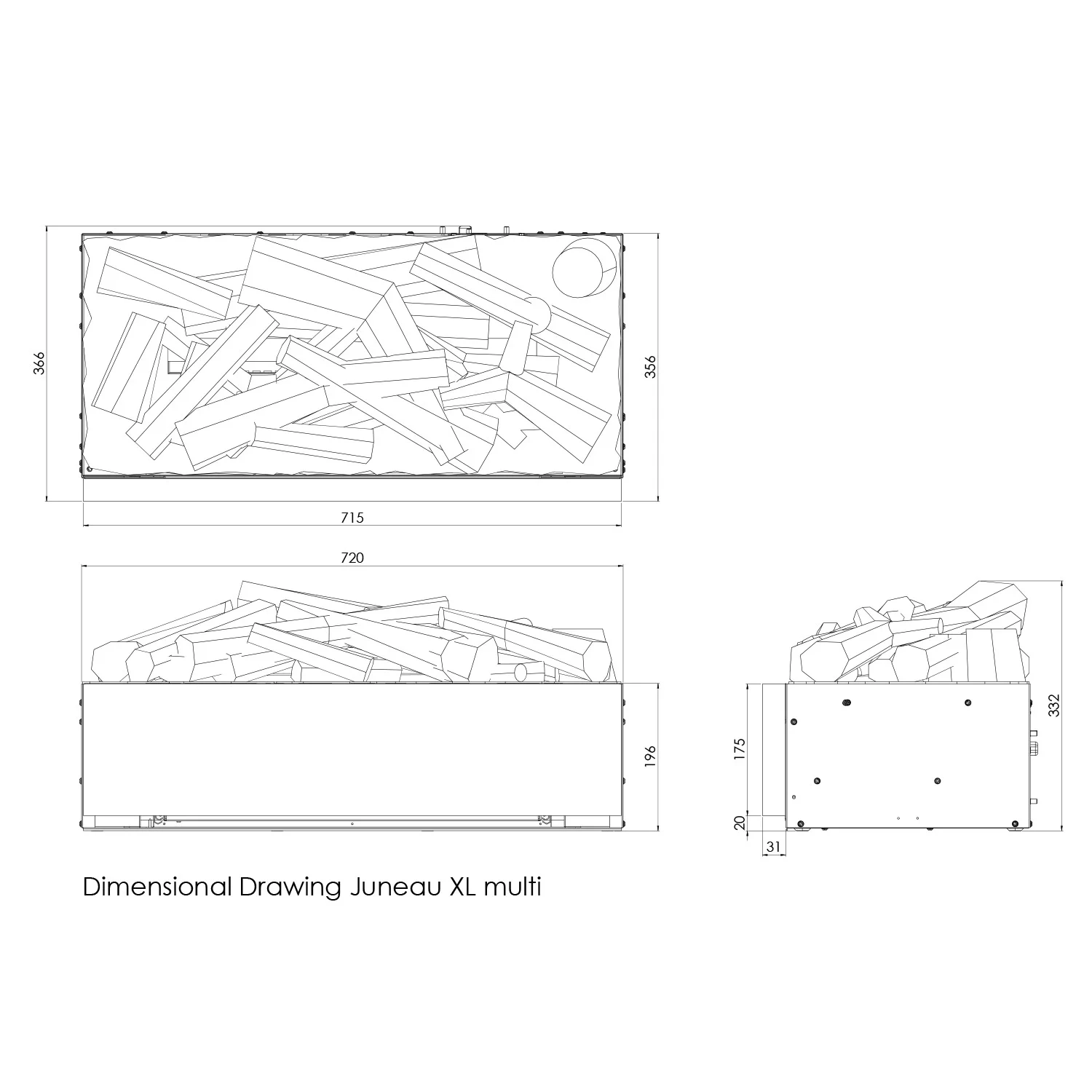 Juneau XL Opti-myst indsats til at indsætte i en almindelig åben pejs. Skab nemt ægte pejsestemning uden rigtige flammer.